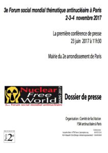 Le troisième Forum Mondial Antinucléaire se déroulera à Paris les 2-3 et 4 novembre 2017 (bref historique ci-dessous).