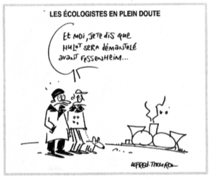 Cyniquement, en France, les susdits irresponsables enferrent eux aussi la population française dans une dépendance obstinée au nucléaire qui nous menace nous et nos voisins, sans compter celles des éventuels pays clients (désormais plus rares) de cette technologie mortifère. La procrastination politique est plus que jamais d’actualité ! De gouvernement en gouvernement, chacun se refile la patate chaude. Citons tout à trac : la fermeture différée de Fessenheim 1 et 2, la réduction de la part nucléaire (reléguée aux calendes grecques) et d’électricité consommée, les déchets, le désarmement atomique… quant il conviendrait de tarir la production de combustible et de déchets nucléaires, d’engager et d’accélérer des fermetures de réacteurs, d’agir pour baisser la consommation électrique et d’investir massivement dans les économies d’énergie, les renouvelables, etc.