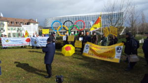 Surmotivé le groupe SdN 72 ? En tout cas, malgré la distance, un Sarthois s’est bel et bien joint à la manifestation du mercredi 26 février 2020 devant le comité olympique à Lausanne pour l’annulation des JO — radioactifs — de 2020 au Japon.