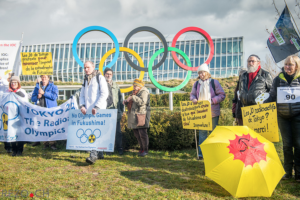 Le 26 février 2020, le Collectif contre les Jeux olympiques radioactifs de Tokyo (qu’a rejoint SdN 72 en 2019) appelait effectivement à se rassembler devant le Comité international olympique (CIO) à Lausanne (en Suisse, canton de Vaud) pour protester contre l’organisation des JO d’été au Japon (du 24 juillet au 9 août) dont la tenue, neuf ans après la catastrophe de Fukushima, est, à tout le moins, inopportune et inappropriée [1], le Japon étant toujours en urgence nucléaire depuis la fonte du cœur de chacun des réacteurs 1 , 3 et 2 et la triple explosion dans les jours suivant le 11 mars 2011 due à hydrogène concentré dans leur enceinte.