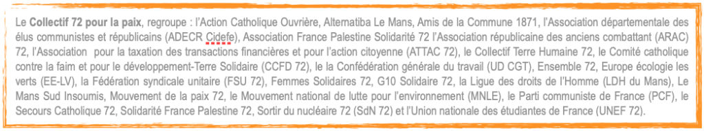 [1] Pour un développement plus détaillé consulter le communiqué du Collectif sarthois pour la paix que nous avons publié sur ce site, c’est ici : ▶.