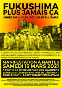 Nous étions de 200 à 650 participant·e·s au plus fort de la manifestation de ce samedi 13 mars à Nantes pour commémorer les dix ans de l’accident nucléaire de Fukushima [1], pour l’arrêt du nucléaire civil et militaire.