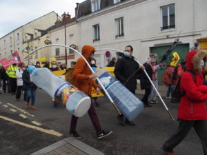 Malgré le froid, la pluie, le vent, l’esprit enjoué, convivial et paladin des participant·e·s a permis de surmonter les affres de la météo. Et l’ambiance est restée de mise grâce aux musiciens, aux chants repris en groupe, au dynamisme folâtre de l’école de samba, sans compter la fantaisie des pancartes des uns et des autres et les impromptus sur l’enfouissement des déchets nucléaire, l’eau (douce, de mer, de consommation) « enrichie » au tritium (cf. photos et vidéo)… Autant de moments intenses que vous pourrez découvrir ou redécouvrir sur la courte captation vidéo (durée : moins de cinq minutes) de cet événement par François Nicolas, c’est là : ▶.