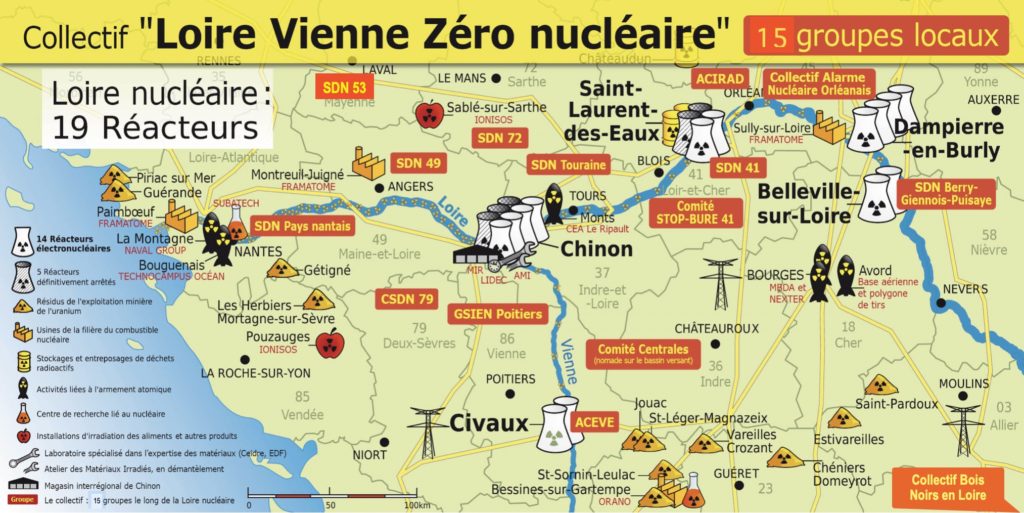 Le collectif « Loire Vienne Zéro nucléaire » s’est constitué en 2016, le long de la Loire et de ses affluents, fort de maintenant quinze groupes s’égrenant du département de la Loire jusqu’au pays nantais. Il enquête, informe, mobilise autour des conséquences du choix nucléaire sur son territoire : le bassin versant du fleuve.