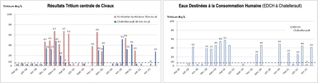 Les résultats des analyses faites par le laboratoire agréé de l’ACRO de 2019 à 2021 montrent la présence de tritium et sont présentés dans un document synthétique [7] sur le site de l’association.