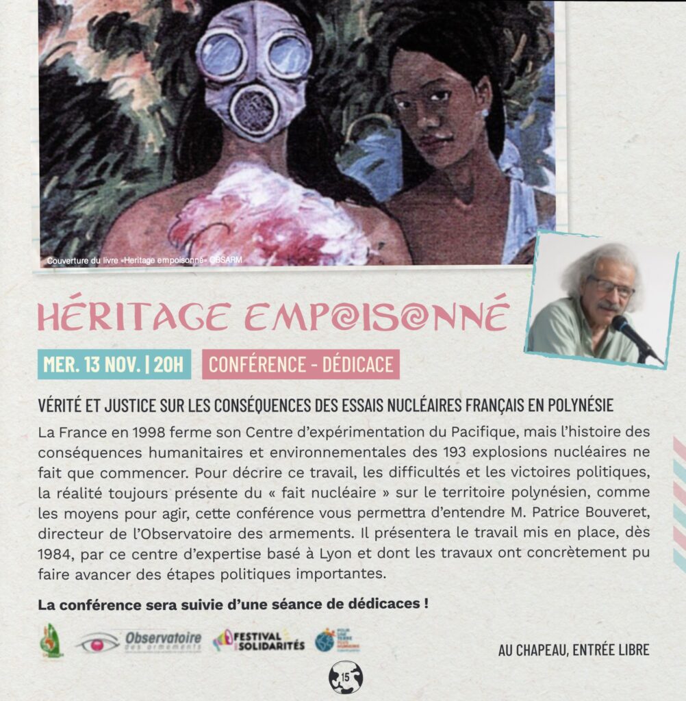 13/11/24 à Changé – conférence de P. Bouveret et T. Sayat : « Héritage empoisonné » vérité et justice sur les conséquences des essais nucléaires Français en Polynésie