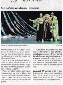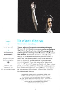 Programme 2019/2020,  les Quinconces — L’Espale, Scène nationale du Mans (page 75). Article Ouest-France du mercredi 15/1/2020.