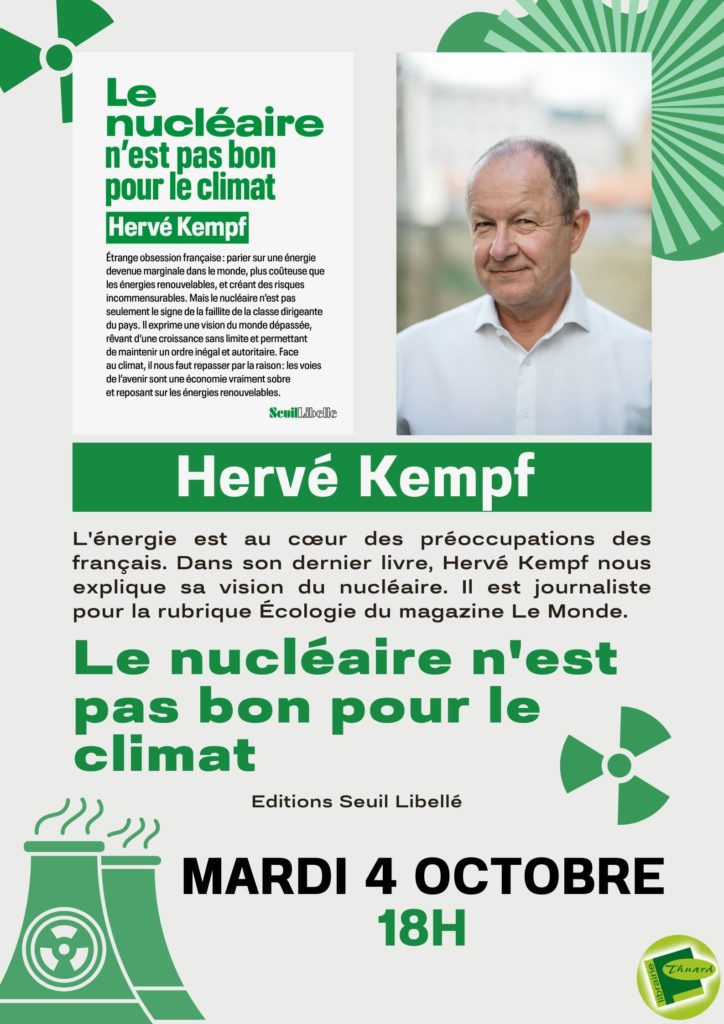 Mardi 4 oct : » Le nucléaire n’est pas bon pour le climat » : H. Kempf à la librairie Thuard